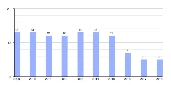 | Gráfica de evolución demográfica de A Igrexa entre 2009 y 2018 |