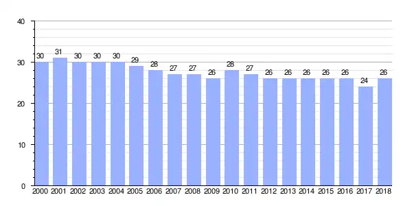 | Gráfica de evolución demográfica de A Torre entre 2000 y 2018 |