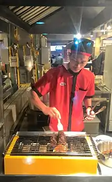 En las ciudades japonesas se pueden encontrar carritos, restaurantes o tiendas de yakitori. En ellos hay parrillas de carbón y carne adobada a la parrilla en un palo. El yakiniku es un tipo de comida en el que la carne y las verduras se asan directamente sobre pequeñas parrillas de carbón o gas a altas temperaturas. Este estilo de cocina se ha popularizado en toda Asia.