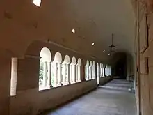 El claustro tiene tres lados románicos y uno, más tardío, gótico. Los lados románicos presentan arcos de medio punto sostenidos por pares de columnas y las galerías se cubren por bóveda de cañón. El lado meridional, gótico, presenta arcos apuntados y un estilo algo menos austero, que no llega a desentonar con la simplicidad del conjunto. Hacia el interior y en frente de la puerta del refectorio, se conserva el lavabo monacal, del siglo XIII.