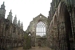 Desde el siglo XV, la abadía de Holyrood ha sido el sitio de muchas coronaciones reales, ceremonial matrimoniales, y sepulturas de los monarcas y otras realezas tras su muerte; pero también sufrió numerosos ataques. Durante la guerra anglo-escocesa por Enrique VIII de Inglaterra, Edward Seymour y Earl de Hertford saquearon la abadía en 1544, luego como Protector de Somerset, realizó un asalto causando gran daño a los edificios. El rey Jacobo II de Inglaterra estableció un Colegio de jesuitas en Holyrood e hizo convertirse a la abadía en mayo de 1688 en una capilla católica para la orden del Cardo, siendo la congregación protestante mudada al nuevo Canongate Kirk. Luego, en noviembre de 1688, cuando Guillermo III de Inglaterra llevó a cabo la «Revolución Gloriosa», el pueblo de Edimburgo ingresó a saquear la iglesia y la cripta real. En 1691, la Canongate Kirk remplazó a la abadía como iglesia parroquial local. El trabajo de restauración incluyó el techo de la abadía que fue reconstruido en 1758, pero el techo colapsó con un huracán en 1768, quedando hasta hoy en día en ruinas.[1][2]
