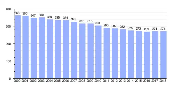 | Gráfica de evolución demográfica de Abad[2] entre 2000 y 2018 |