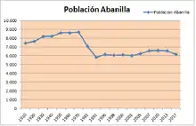 En los años 70 y 80, el municipio sufrió una notable pérdida de población, debido al éxodo de habitantes hacia la ciudad de Murcia y otros pueblos más grandes de la Región de Murcia y de la provincia de Alicante. A comienzos del siglo XXI, Abanilla aumentó ligeramente su número de habitantes, aumento que se detuvo tras la crisis de 2008, volviendo a perder población desde 2011.