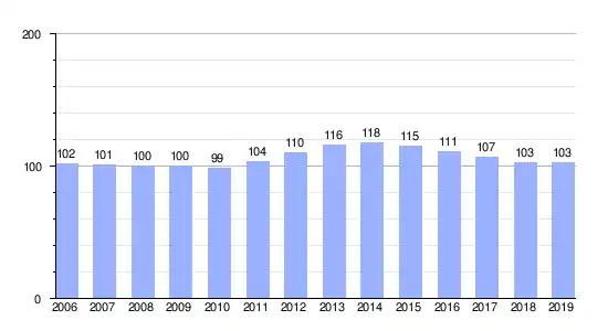 | Gráfica de evolución demográfica de Abaucourt-Hautecourt entre 2006 y 2019 |