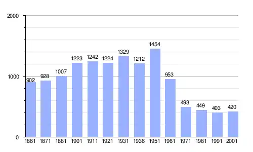 | Gráfica de evolución demográfica de Abbateggio entre 1861 y 2001 |