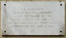 La abadía de Port-Royal de París fue fundada en el siglo XVI para aliviar la congestión en la casa madre ubicada en la abadía de Port-Royal des Champs. Fue cerrada en 1790 tras la expulsión de las religiosas, siendo posteriormente reemplazadas por las hermanas de la Orden de la Visitación de Santa María. El edificio está registrado como monumento histórico francés desde 1928.[3]La abadía, ubicada hoy en día dentro del recinto del hospital Cochin, está bordeada por el bulevar de Port-Royal.[4]