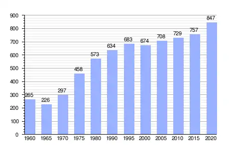 | Gráfica de evolución de Abbekås entre 1960 y 2020 |