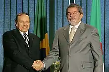 Abdelaziz Buteflika (عبد العزيز بوتفليقة) (Uchda, Marruecos, 2 de marzo de 1937-Zéralda, 17 de septiembre de 2021)[1] fue un militar y político argelino que fue presidente de la República Argelina Democrática y Popular desde el 27 de abril de 1999 hasta su renuncia el 2 de abril de 2019. También fue líder de facto del partido hegemónico Frente de Liberación Nacional (FLN). Con casi veinte años en el cargo, Buteflika es la persona que más tiempo ha ocupado la jefatura de estado argelina.[2] Fue también el ministro de relaciones exteriores de Argelia en 1963 y ministro de juventud, turismo y deporte en 1964, durante el gobierno del presidente Ahmed Ben Bella.
