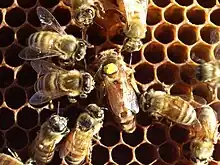 La abeja reina comienza a desovar en primavera. Esto es probablemente activado por las floraciones de las que liban el néctar, abundantes ya en esta época. La reina es la única hembra fértil y deposita los huevos de los cuales nacen todas las demás abejas. La abeja reina no abandona la colmena, salvo durante los vuelos de fecundación, o cuando se produce un enjambre para dar lugar a una nueva colonia. La reina deposita sus huevos en panales de cera que las obreras construyen con celdas hexagonales. El huevo después del tercer día se transforma en una pequeña larva que es alimentada por las abejas nodrizas (abejas obreras jóvenes). Después de una semana, aproximadamente, dependiendo de la especie, la larva es sellada en su celda por las abejas nodrizas, produciéndose el estado de ninfa o pupa. En aproximadamente otra semana (nuevamente dependiendo de la especie), la ninfa emerge como una abeja adulta.