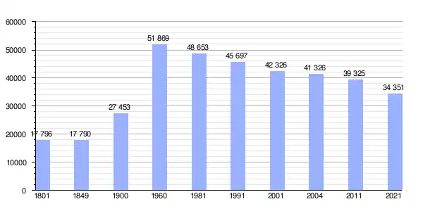 | Gráfica de evolución demográfica de Abrantes entre 1801 y 2021 |