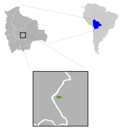 Su hábitat natural son las zonas rocosas de los bosques nubosos del interior de Bolivia.