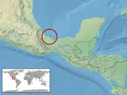Se localiza en el volcán San Martín de la Sierra de los Tuxtlas, en el estado de Veracruz a unos los 1.637 m s. n. m.. Es arbórea propia de los bosques nublados en el dosel de la selva. Necesitan árboles altos para sobrevivir, por lo que la destrucción de estos sería perjudicial para la especie.