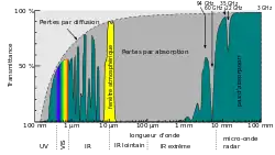 Para la mayoría de las sustancias, la tasa de absorción varía con la longitud de onda de la luz incidente, lo que lleva a la aparición del color en los pigmentos que absorben ciertas longitudes de onda, pero no para otras. Por ejemplo, con la luz blanca incidente, un objeto que absorbe las longitudes de onda en el azul, verde y amarillo, aparecerá en rojo. Un material negro absorbe todas las longitudes de onda visible (convertidas en calor) mientras que un material blanco las reflejará.