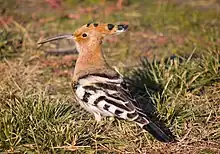 La abubilla[2] (Upupa epops) es una especie de ave bucerotiforme de la familia Upupidae;[3] no obstante, en la taxonomía de Sibley-Ahlquist, Upupa es separado en un orden propio, los Upupiformes. Se trata de una especie diurna, solitaria, territorial y migratoria.
