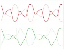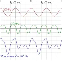Si dos notas se tocan simultáneamente, con una razón de frecuencia que son fracciones simples (p. ej.: 2/1, 3/2 o 5/4), entonces la onda compuesta seguirá siendo periódica y la combinación sonará en consonancia- Por ejemplo, una nota vibrando a 200 Hz y una nota vibrando a 300 Hz (una quinta perfecta o una razón de 3/2 sobre 200 Hz) se añadirá para formar una onda de 100 Hz, cada 1/100 segundos la onda de 300 Hz se repetirá tres veces y la de 200 Hz dos, aunque la onda dejará de ser sinusiodal.