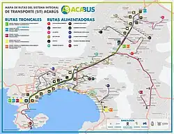 El Sistema Integral de Transporte (SIT), mejor conocido como Acabús, es un autobús de tránsito rápido (Bus Rapid Transit, BRT) que presta servicio en la Zona Metropolitana de Acapulco en el estado de Guerrero. Tuvo una inversión de 1,800 millones de pesos. Se tenía previsto que el primer autobús comenzara a circular en mayo de 2013 y el proyecto completo a finales de agosto del mismo año.[1] Sin embargo, la ejecución del proyecto presentó retrasos en la conclusión de las obras, por lo que el sistema inició operaciones el 31 de mayo de 2016 en fase de pruebas, y el 25 de junio con el servicio real. Es el primer transporte de este tipo en el estado de Guerrero.[2]