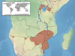 Se distribuye en África en: Angola, Etiopía, Botsuana República Democrática del Congo, Kenia, Malaui, Mozambique, Namibia, Somalia, Sudáfrica, Sudán, Sudán del Sur, Tanzania, Uganda, Zambia y Zimbabue.[1]