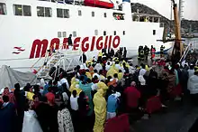 Por nacionalidad, los pasajeros eran 989 italianos, 569 alemanes, 462 franceses, 177 españoles,[26] 130 indios,[27] 126–129 estadounidenses,[26][28][29] 127 croatas, 108 rusos, 74 austriacos, 69 suizos,[26] 47 brasileños,[30] y por lo menos 34 neerlandeses;[31] 26 ciudadanos chinos de la región administrativa especial de Hong Kong, 25 británicos, 21 australianos, 17–18 argentinos, 13 taiwaneses, 12 canadienses, 12 ciudadanos chinos de la China continental, 12 polacos, 11 húngaros, 11 portugueses, 11 dominicanos,[32] 10 rumanos,[33] 10 colombianos, 10 chilenos, 9 turcos,[26] 8 búlgaros, 8 peruanos,[34] 5 venezolanos, 4 israelíes, 4 daneses,[35] 3 macedonios,[36] 2 sudafricanos, 2 paraguayos, 2 finlandeses[37] y 1 neozelandés.[38] Había un número indeterminado de pasajeros provenientes de Corea del Sur,[39] México,[40] e Irlanda.[41] Las nacionalidades de toda la tripulación a bordo no han sido enumeradas; algunos eran italianos (incluido el capitán),[39] pero la mayoría eran indios, filipinos, y ceilaneses.[42]