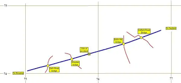 - Mapa a gran escala del lugar del accidente del Mapa Mágico de la Agencia de Medio Ambiente. El accidente ocurrió cerca de la pequeña mordida en la parte superior del terraplén al norte y al oeste de Ryecroft Close. Haga clic derecho en el enlace y ábralo en una nueva pestaña o en una nueva ventana.