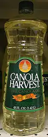 El aceite de colza (también denominado aceite de nabina o aceite de canola) es el extracto de la semilla de la colza, usado sobre todo en el norte de Europa como condimento y para el alumbrado.[1] Es de textura viscosa y color pardo oscuro antes de llegar a ser refinado. De este aceite se puede separar estearina sólida. En países europeos como Alemania es el principal aceite de uso alimentario utilizado para la cocina y la fabricación de comida.[2]