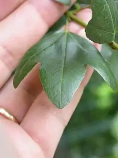 Es un árbol de hoja perenne o semiperenne, arbusto o pequeño árbol que alcanza un tamaño de 10 m de altura con un tronco con un diámetro de 50 cm. La corteza es de color gris oscuro, lisa en los árboles jóvenes, formando escamas y fisuras superficialmente en los árboles maduros. Los brotes son de color verde en un primer momento, convirtiéndose en marrón opaco en el segundo año. Las hojas son opuestas, duras y coriáceas en la textura, de 1 a 4 cm de largo y 1 a 3 de ancho, de color verde oscuro brillante, simples o con tres lóbulos. Los lóbulos tienen el margen entero. La flores son de color amarillo-verdoso, producidas en pequeños corimbos colgantes. El fruto es una doble sámara con dos redondas semillas aladas, las alas de 1,5-3 cm de largo, se extienden en un ángulo agudo.[4][5][6]