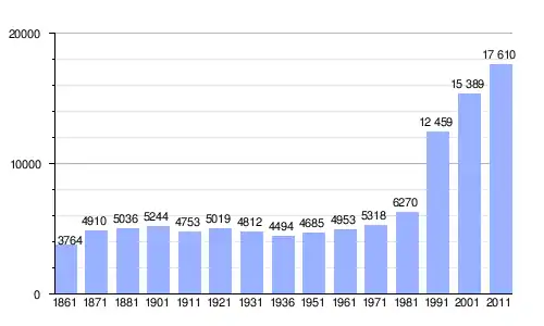 | Gráfica de evolución demográfica de Aci Sant'Antonio entre 1861 y 2011 |