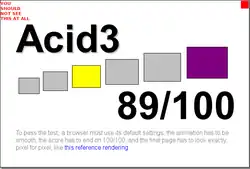 Acid3 es un sitio hecho por WaSP que pone a prueba los navegadores con los estándares web, especialmente los de DOM y ECMAScript.