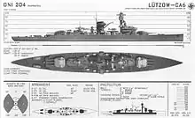 El Deutschland participó en acciones significativas con la Kriegsmarine, incluidas varias patrullas de no intervención, durante las cuales fue atacado por bombarderos republicanos.[28] Al inicio de la Segunda guerra Mundial, se encontraba navegando en el Atlántico su, preparado para atacar al tráfico mercante Aliado. El mal tiempo entorpeció sus esfuerzos y solo consiguió hundir o capturar tres buques, tras lo cual regresó a Alemania donde fue renombrado Lützow.[29][30] Después participó en la Operación Weserübung, la invasión de Noruega. Dañado en la batalla de Drøbak Sound, retornó a Alemania para efectuar reparaciones. Durante dicha navegación fue torpedeado por submarinos británicos sufriendo graves daños.[31]