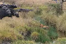 Al cooperar para ahuyentar con éxito a los depredadores, todos los individuos involucrados aumentan sus posibilidades de supervivencia y reproducción. Un individuo tiene pocas posibilidades contra un depredador más grande, pero cuando se trata de un grupo grande, el riesgo para cada miembro del grupo se reduce o se diluye. Este llamado efecto de dilución propuesto por William Donald Hamilton es otra forma de explicar los beneficios de la cooperación por parte de individuos egoístas. Las Leyes de Lanchester también brindan una idea de las ventajas de atacar en un grupo grande en lugar de hacerlo individualmente.[19][20]