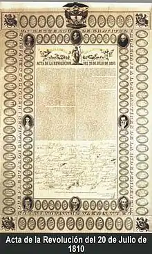 ![]() Firma del acta del Cabildo el 20 de julio de 1810. | ||