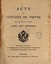 - Acte du congrès de Vienne du 9 juin 1815 avec ses annexes (en francés). Viena: Imprimerie Impériale et Royale. 1815.