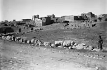 En 1863, el explorador francés Victor Guérin visitó la zona y advirtió que muchos de los hombres habían huido para evitar el servicio militar, en su mayoría hacia el sur con tiendas de campaña. También dejó constancia de un edificio cuyos lados medían dieciséis pasos de ancho y que estaba construido con un hermoso tipo de piedra. Contenía varias salas abovedadas y era la casa de uno de los jeques del pueblo.