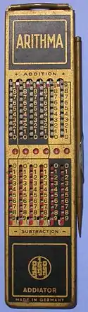 Addiator era el nombre comercial de una calculadora mecánica fabricada por la empresa berlinesa Addiator Gesellschaft en el siglo XX. No realizaba más que las operaciones aritméticas de suma y resta. El aparato consistía en unas regletas metálicas que se deslizaban dentro de un receptáculo metálico plano, a través de cuyas ranuras y perforaciones se manipulaban los factores y se obtenían los resultados. El prototipo básico se concretó en múltiples variantes a lo largo del medio siglo largo que duró su fabricación, iniciada en 1920 y concluida en 1982; algunas de ellas servían para calcular en bases distintas de la decimal, como los sistemas anglosajones de monedas y de longitudes o las operaciones con magnitudes horarias. Algunos modelos realizaban la suma por el anverso del aparato y la resta por el reverso.