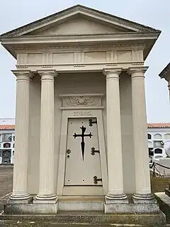 Falleció de manera inesperada a consecuencia de un ataque al corazón a las diez de la noche del 26 de agosto de 1951,[1] siendo sepultado al día siguiente en el sencillo panteón familiar del Cementerio de San Juan (más conocido como «cementerio viejo») de Badajoz,[68] erigido por expreso deseo de su padre en septiembre de 1911 y diseñado siguiendo las pautas de un templo griego tipo próstilo por el escultor y marmolista Ángel Zoido Pérez,[69] profesor de Modelado y Vaciado de la «Escuela Profesional de Artesanos» de 1915 a 1959, autor entre otras obras del basamento de la popular estatua del pintor Luis de Morales, inaugurada en la actual «Plaza de España» en junio de 1925.