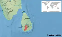 Es endémica de Sri Lanka. Su hábitat natural incluye bosques secos tropicales o subtropicales, montanos secos, ríos y marismas de agua dulce. Está amenazada de extinción.