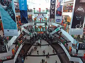 Grandes centros comerciales, convertidos en lugares de estancia y paseo, reflejan el uso de la compra como actividad de ocio. - Adicción a la compra y compra compulsiva. Aunque conceptualmente se trata de dos cuestiones distintas, la adicción al consumo y la compra compulsiva están interrelacionadas y en ambas se manifiesta un mismo comportamiento: la carencia de autocontrol para regular las compras y contener los impulsos. Por adicción al consumo, se entiende el afán por efectuar continuamente compras nuevas, en su inmensa mayoría de cosas innecesarias o superfluas. El concepto de compra compulsiva se refiere al proceso psíquico por el que muchas personas no son capaces de controlar sus deseos o impulsos y someterlos a la reflexión o la crítica antes de la compra.[3] Por supuesto no todas las compras imprevistas o no planificadas son compras compulsivas. Una persona puede encontrar una oferta de un artículo que precisaba, pero que no pensaba comprar de inmediato, y adquirirlo, sin que se trate de una compra compulsiva. Por ello hay que señalar que una característica básica del comportamiento de las personas con problemas graves de adicción al consumo es que las compras que realiza son inadecuadas e insatisfactorias. Es posible que sienta cierto placer al realizarlas o una sensación de alivio al ceder ante la tensión que le provoca el deseo de compra, pero después se arrepentirá de la compra efectuada. Este arrepentimiento, en el caso de personas con problemas intensos de adicción al consumo, puede llegar a ser una sensación de culpa y malestar muy profunda, aunque para la mayoría de los consumidores, simplemente el objeto deja de ser atractivo una vez comprado y se desecha, o se olvida y no se usa jamás.