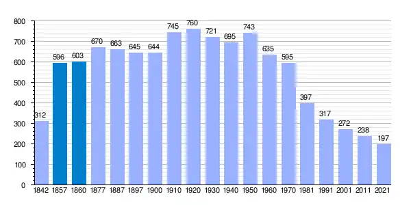 | 1842 | 1857 | 1860 | 1877 | 1887 | 1897 | 1900 | 1910 | 1920 | 1930 | 1940 | 1950 | 1960 | 1970 | 1981 | 1991 | 2001 | 2017[8] | |||||||||||||||||
