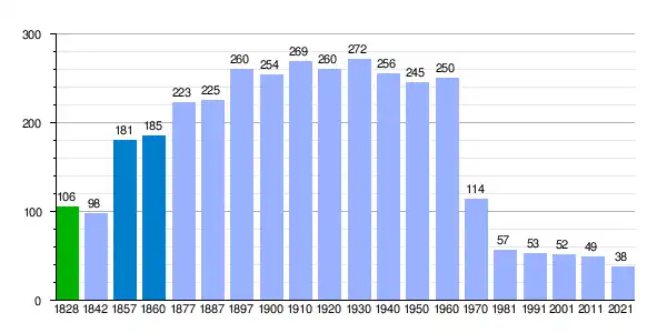 | Gráfica de evolución demográfica de Adrada de Pirón[5] entre 1828 y 2021 |