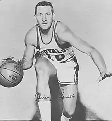 - Foto de Smith celebrando el título de la NCAA de 1958 (enlace roto disponible en Internet Archive; véase el historial, la primera versión y la última).