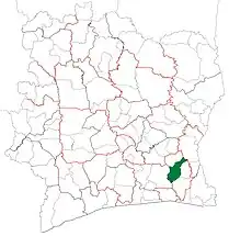 Se encuentra ubicado al sureste del país, cerca del golfo de Guinea, del río Komoé y de la frontera con Ghana.