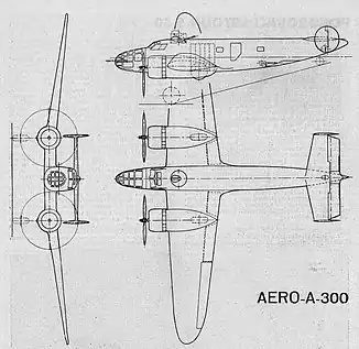 Diseñado por Aero como reemplazo de los obsoletos bombarderos Bloch MB.200 de fabricación local de la Fuerza Aérea Checoslovaca, el transporte- bombardero Aero A-304 formó la base de su diseño. El nuevo avión montó motores radiales Bristol Mercury IX de 610 kW / 820 hp y transportó tres ametralladoras para la defensa. El A-300 fue más rápido que cualquier otro avión checoslovaco en el inventario, excepto el caza Avia B-35. A pesar de mostrar muchas promesas, el estallido de la Segunda Guerra Mundial interrumpió el desarrollo y la producción del avión
