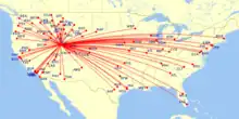 A partir de abril de 2013 hay más de 645 salidas de vuelos regulares y llegadas por día a 89 ciudades sin escalas en los Estados Unidos, Canadá y México, así como un vuelo diario sin escalas a París.[7]