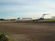 - Austral empleaba un sector del Aeroparque Jorge Newbery conjuntamente con Aerolíneas Argentinas.