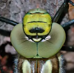 Tiene un cuerpo largo, de color negro con manchas; el macho tiene además manchas azules en el abdomen. libélula de gran tamaño, con 70 mm de largo. Se ve a menudo en jardines y bosques abiertos. Ésta es una especie curiosa y suele acercarse a las personas.