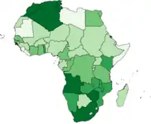 En 1989, había un estimado de 5.6 millones de africanos de ascendencia europea en el continente.[14] La mayoría eran de origen neerlandés, británico, portugués, alemán, francés, y en menor número, italiano, español, griego o irlandés. La mayoría vivía a lo largo de la costa mediterránea, en Sudáfrica, o Zimbabue.