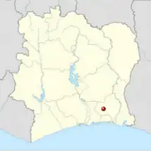 Se encuentra ubicado al sureste del país, cerca de la costa del golfo de Guinea y de la orilla occidental del río Komoé.