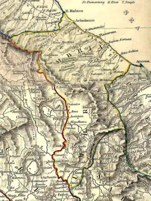 Este territorio corresponde actualmente a la parte septentrional de la región italiana de Las Marcas situada al norte del río Esino y a la parte meridional de la actual provincia de Rimini.
