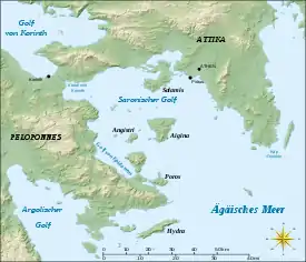 La isla en el sureste de la entrada del Golfo Sarónico