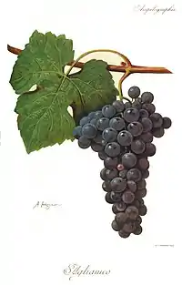 La aglianico es una uva de vino tinto cultivada en el sur de Italia, sobre todo en Basilicata y Campania.