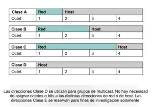 Las direcciones IP pueden ser de diferentes tipos o clases (A, B, C, D y E). Una red de clase A se reserva en la actualidad para los Gobiernos, y en el pasado también para grandes empresas como por ejemplo Hewlett Packard. Las direcciones de clase B se otorgan a medianas empresas. Los usuarios “normales” usarán direcciones de clase C, se pierde así un rango de direcciones IP importante.